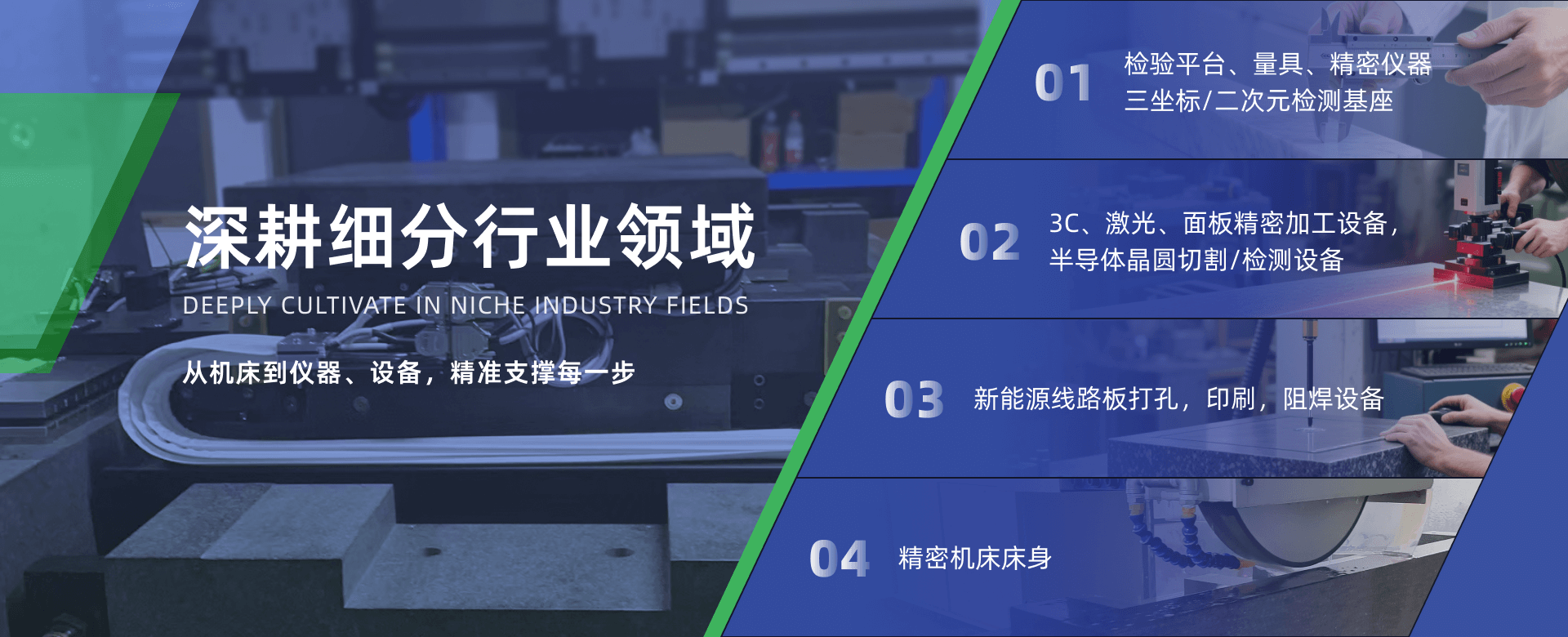 產(chǎn)品廣泛應(yīng)用于3C、激光、半導(dǎo)體、醫(yī)療、新能源、檢測設(shè)備、直驅(qū)運(yùn)動(dòng)平臺(tái)、機(jī)床、非標(biāo)自動(dòng)化設(shè)備等領(lǐng)域。自成立以來,公司以“客戶價(jià)值為核心,卓越品質(zhì)為基石,奮力鑄就中國第一”的企業(yè)高度,依托先進(jìn)設(shè)備、一流技術(shù)與高素質(zhì)團(tuán)隊(duì),在石材加工與開發(fā)應(yīng)用領(lǐng)域持續(xù)創(chuàng)新,以穩(wěn)定的產(chǎn)品質(zhì)量贏得客戶廣泛信任與贊譽(yù)。